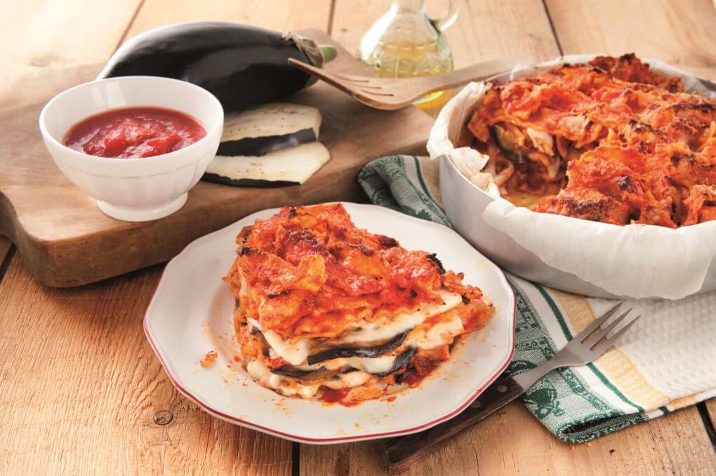 - Vajazz ki egy téglalapalakú, tapadásmentes (Pyrex) sütőtálat, és váltakozva rétegezd bele a tésztát, a padlizsánszeleteket, a Mozzarellát és a bazsalikomot. Addig ismételd a rétegezést, amíg a hozzávalók elfogynak.