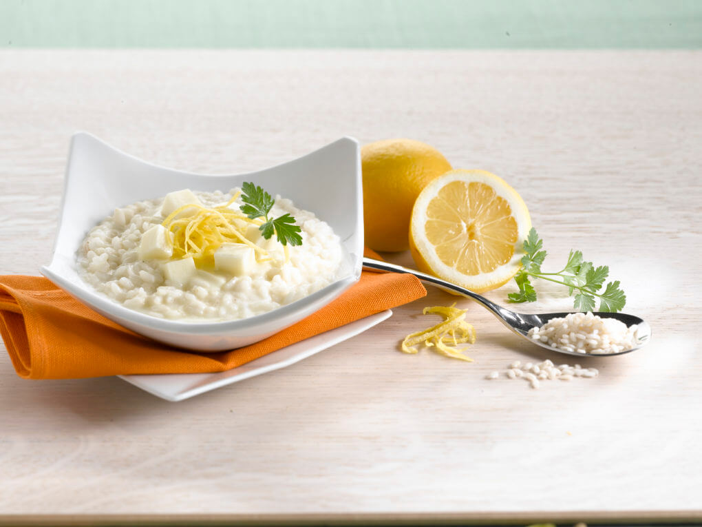 3. Amikor a rizs megfőtt és krémes állagúvá vált, adjuk hozzá a megmaradt olajat és keverjük bele a Galbani Parmigiano Reggiano sajtot és a reszelt citromhéjat.